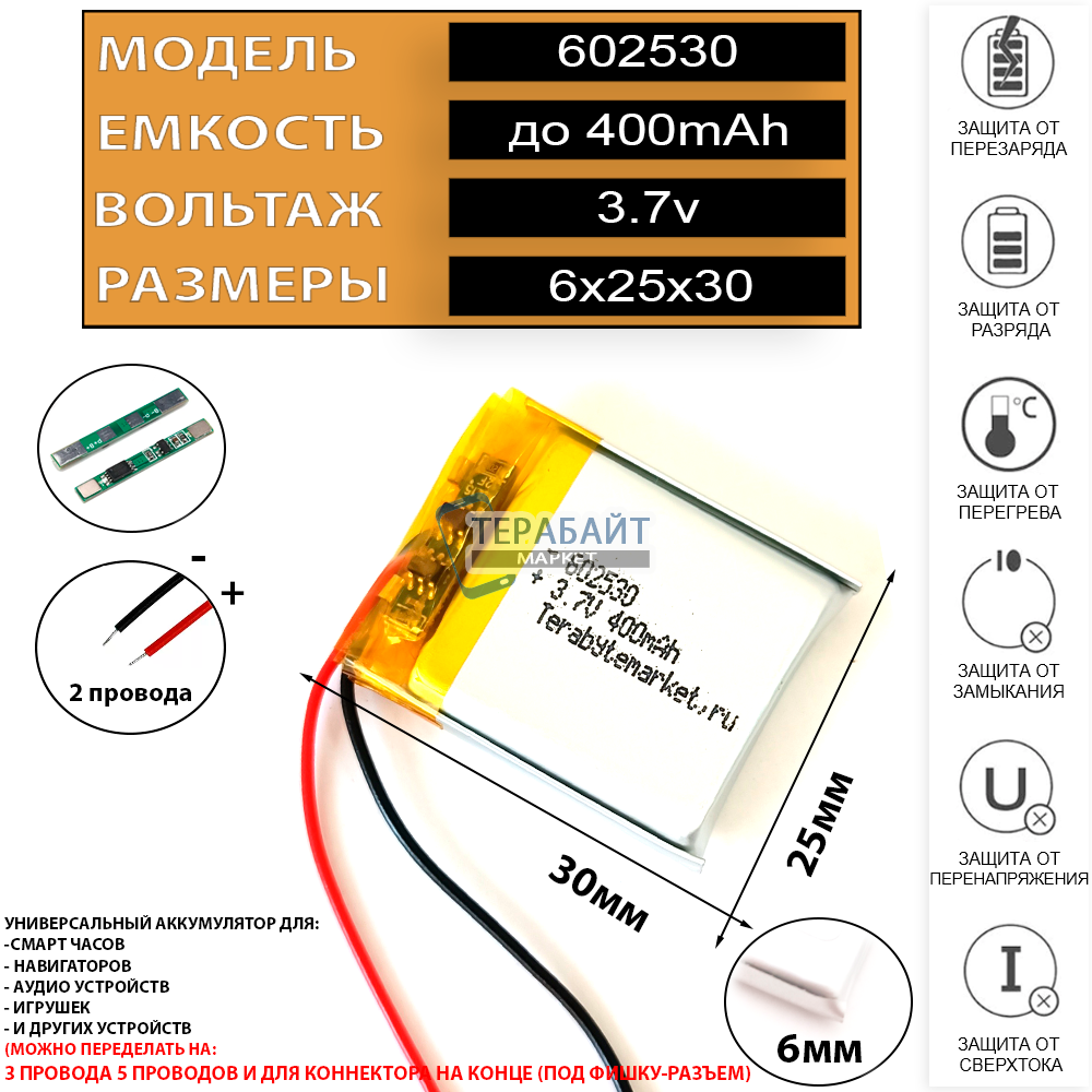 АККУМУЛЯТОР АКБ БАТАРЕЯ 6мм на 30мм на 25мм 3.7V