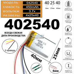 АККУМУЛЯТОР 402540 3 провода 450mAh