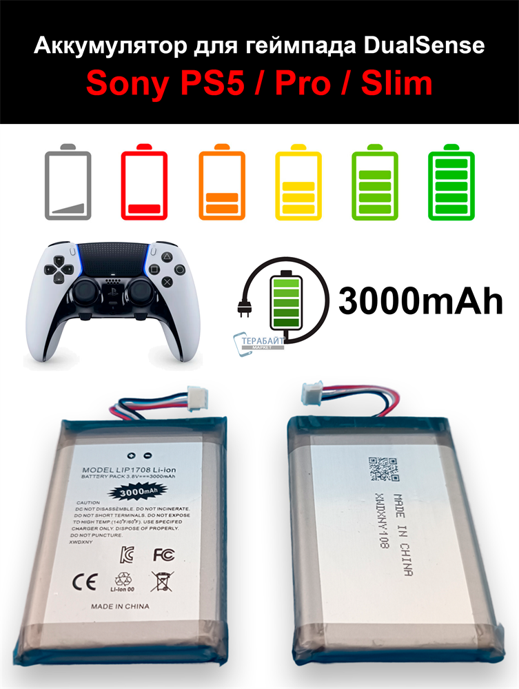 Аккумулятор для геймпада (джойстика) DualSense Sony playstation PS5 / Pro / Slim 3000mAh 3.7v li-ion LIP1708