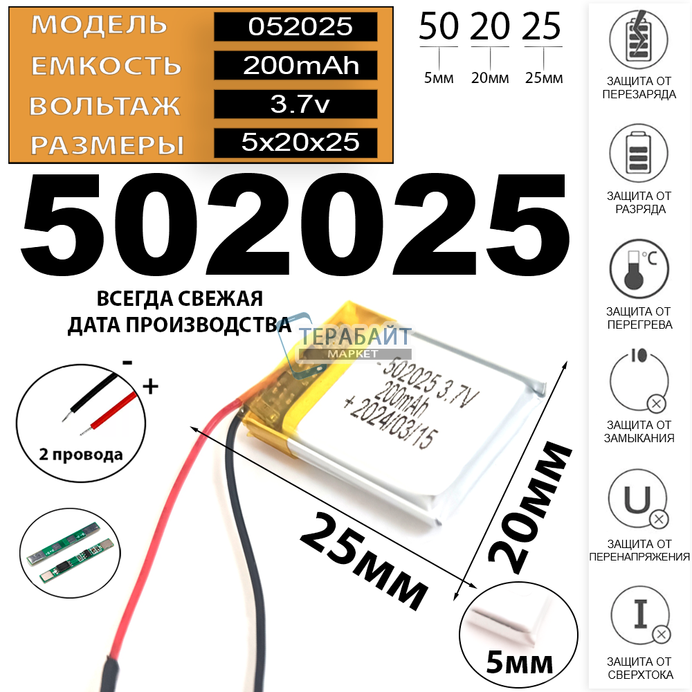 Аккумулятор подходит для смарт часов Smart Watch GT08 200mAh 3.7v 2 провода (совместимая батарея универсальная)
