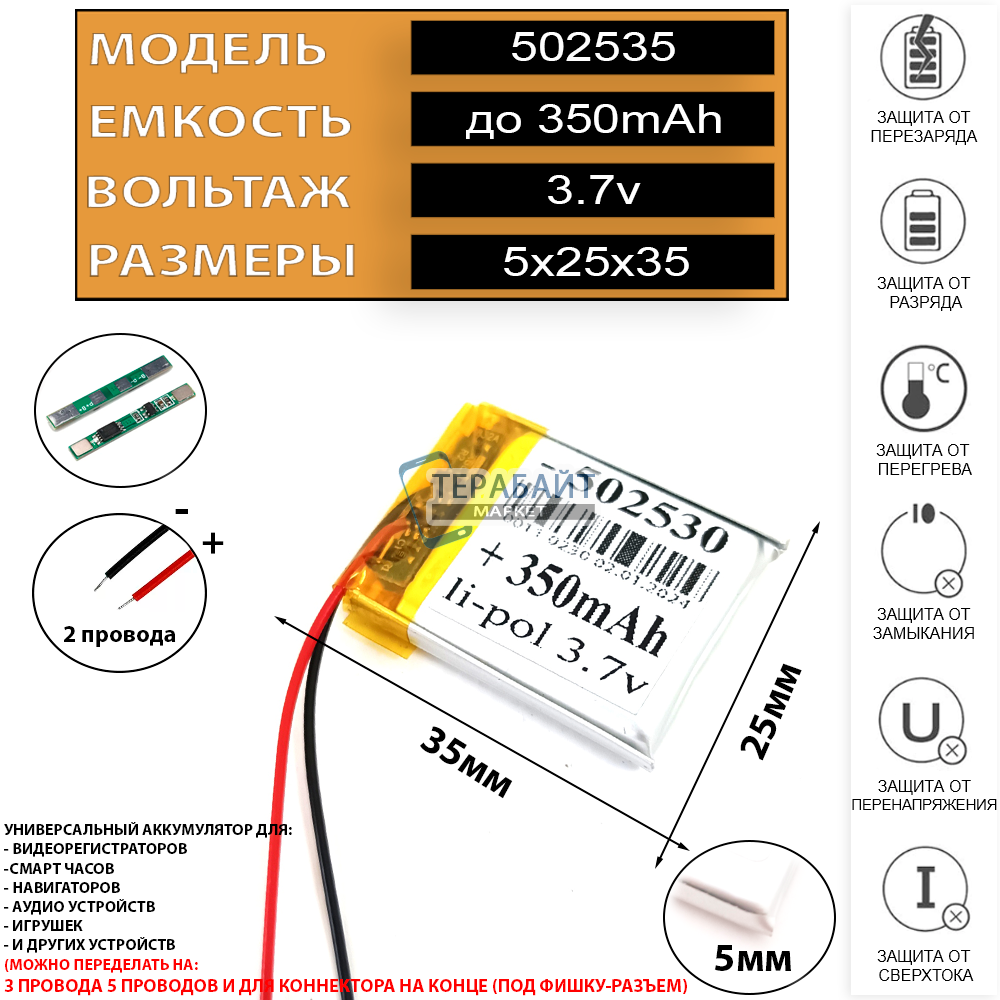 🔋 Емкость до 350mAh 3.7v