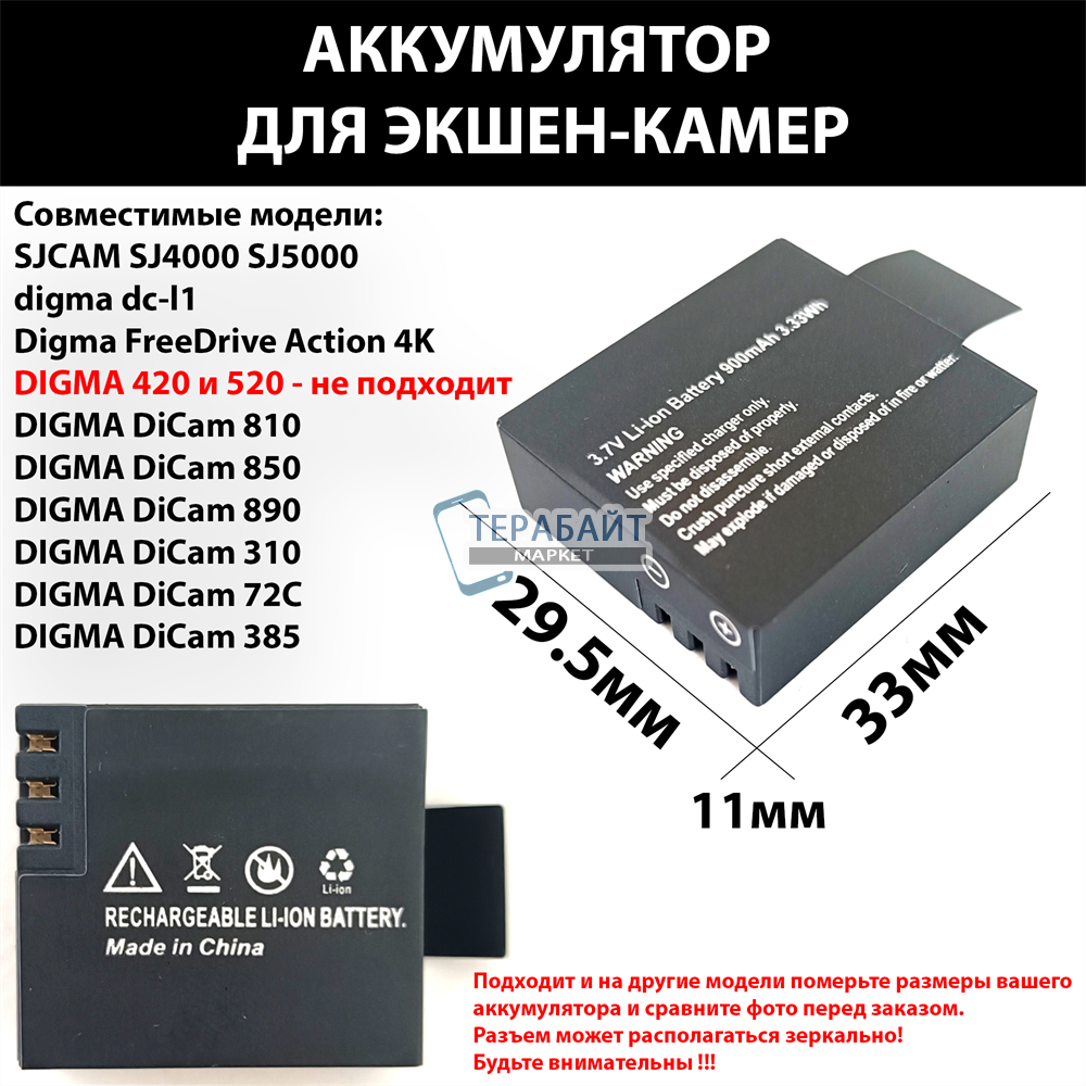 Аккумуляторная батарея для экшен-камеры Digma DiCam 180