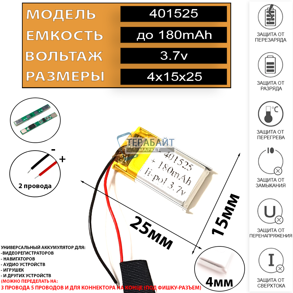 АККУМУЛЯТОР (АКБ БАТАРЕЯ) 4мм на 15мм на 25мм 3.7V ДЛЯ СМАРТ ЧАСОВ Garmin Swim 2 СОВМЕСТИМАЯ УНИВЕРСАЛЬНАЯ