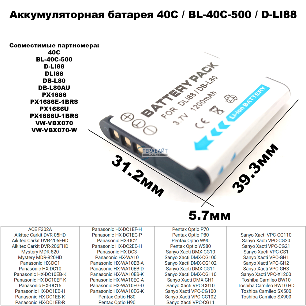 Аккумулятор 40C / BL-40C-500 / D-LI88 для видеорегистратора Genius DVR-FHD570 Genius DVR FHD570