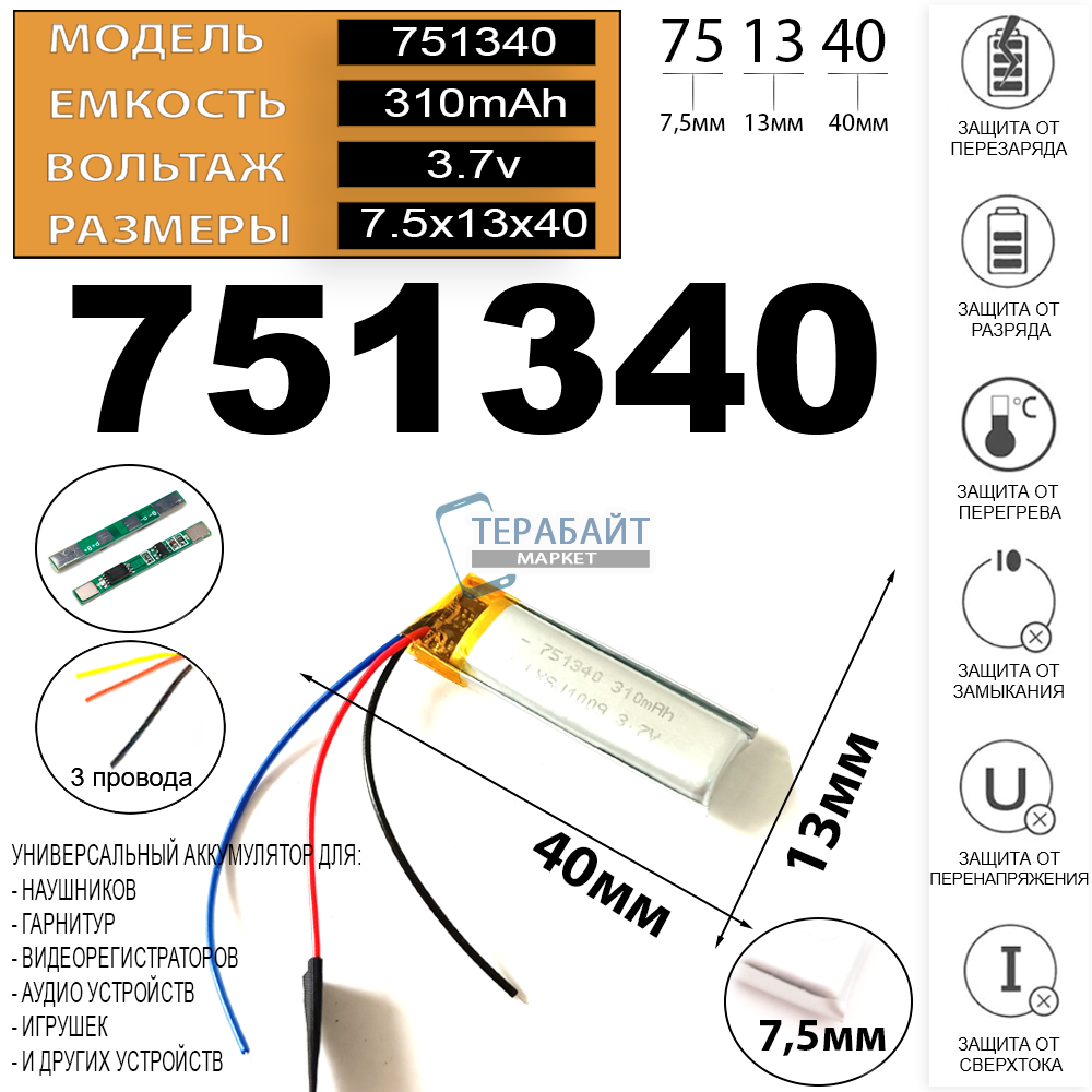 • 🔋 Емкость 310mAh 3.7v