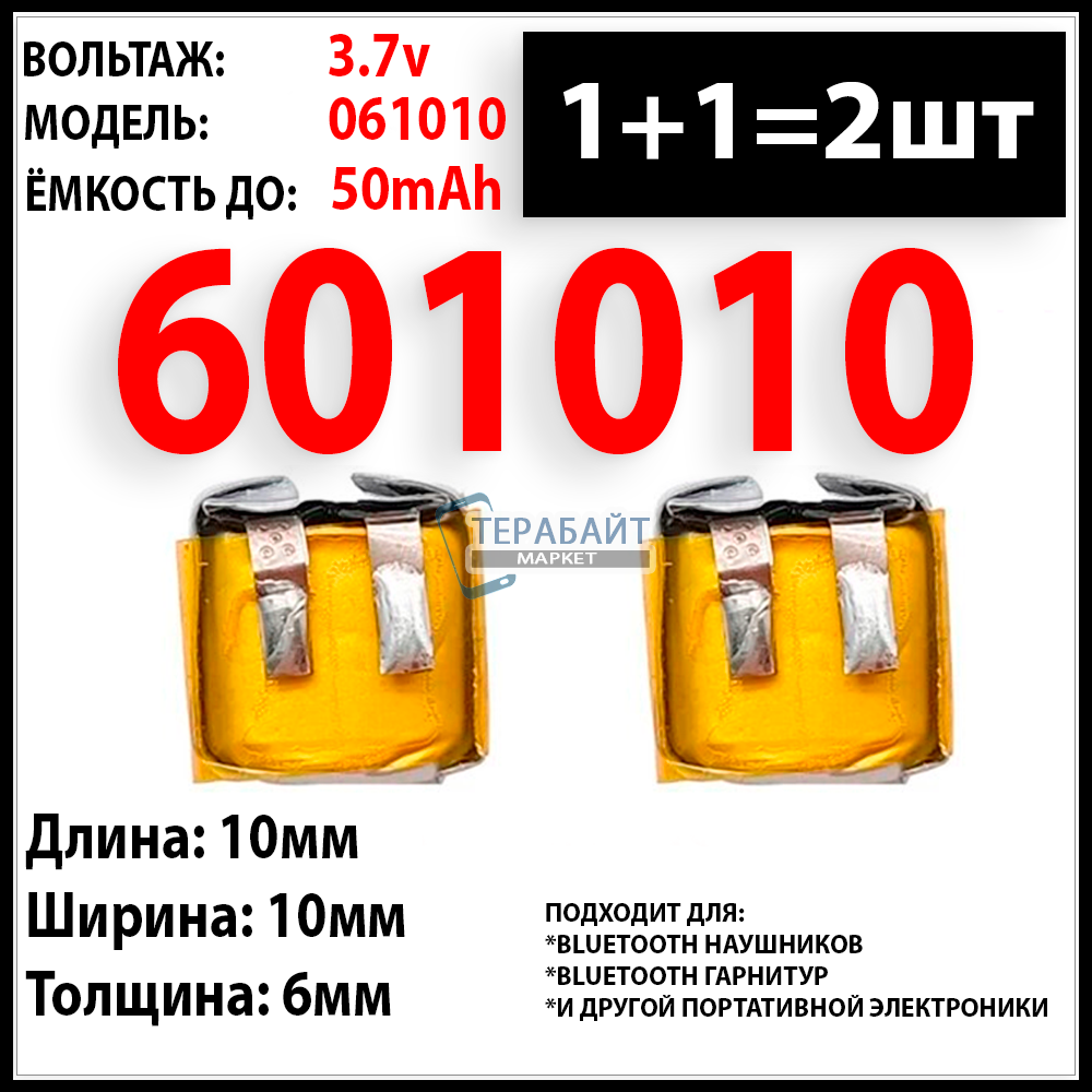 Аккумулятор подходит для беспроводных наушников QCY T5 QCY T 5 3.7v 50mAh (2шт в комплекте) (совместимая батарея универсальная)
