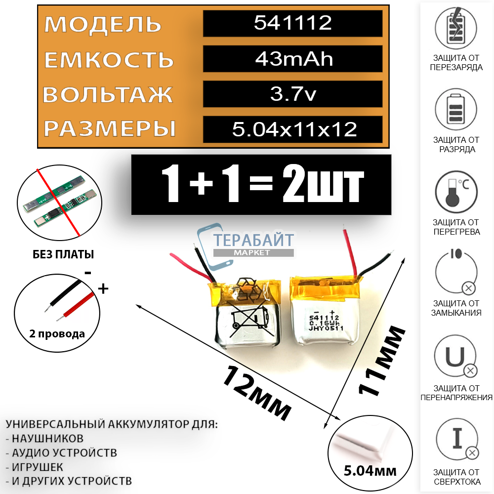 - 🔋 Ёмкость 1шт 43mAh (2шт до 86mAh)