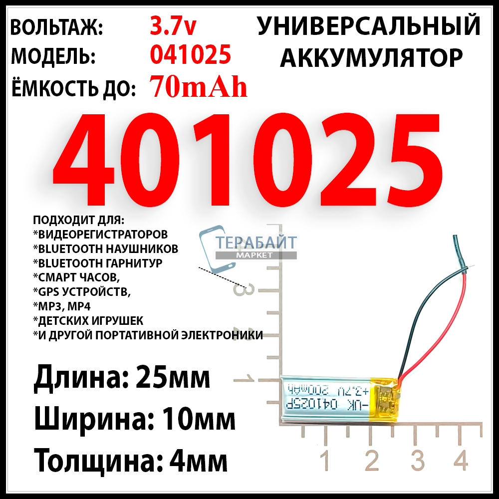 • 🔋 Емкость до 70mAh 3.7v