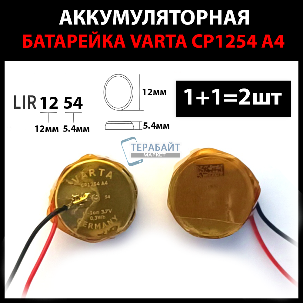 Перезаряжаемая аккумуляторная батарейка CP1254 A4 (2шт комплект) 70mAh 3.7v 0.3Wh Li-ion ТЕРАБАЙТ МАРКЕТ