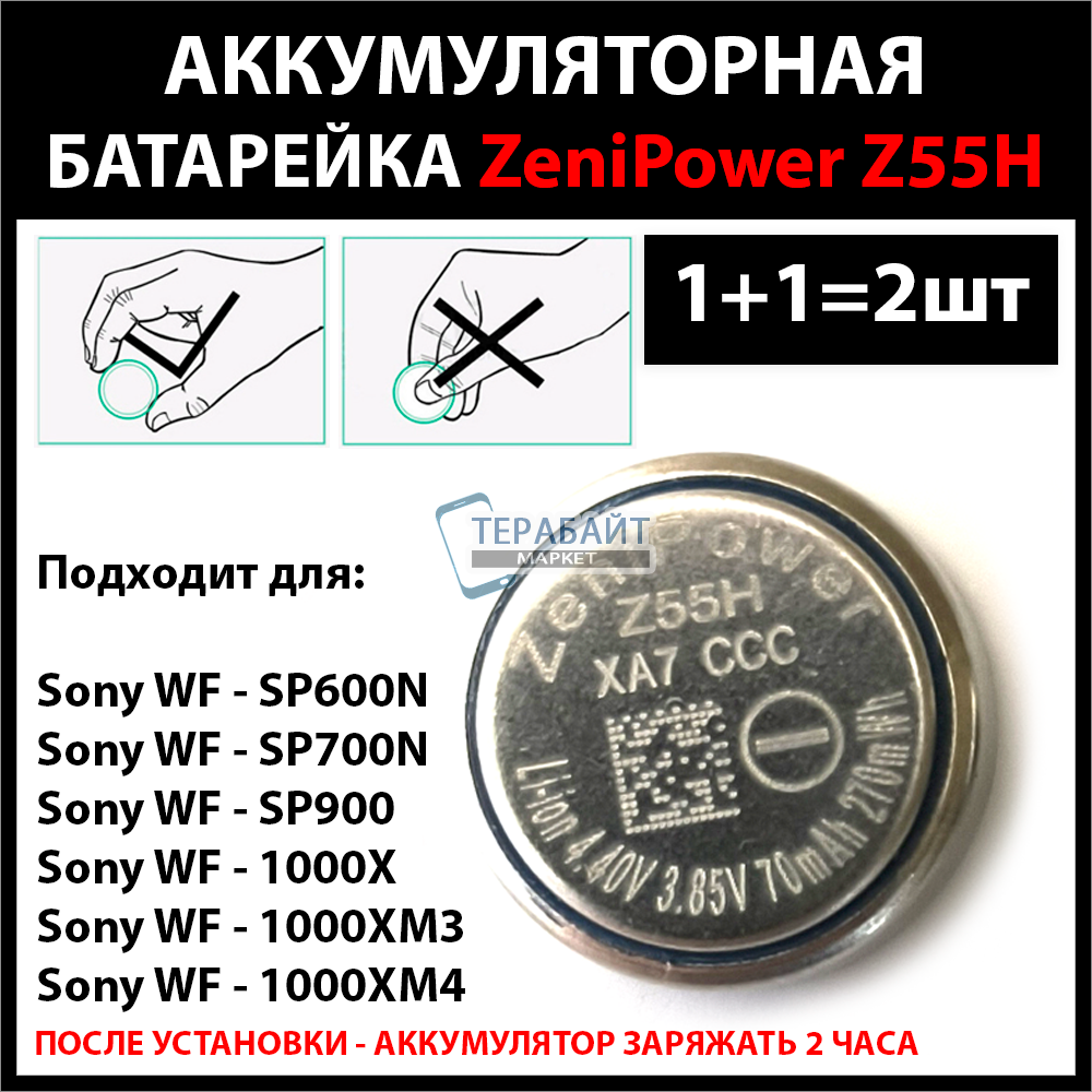 Перезаряжаемая аккумуляторная батарейка для наушников Sony WF-1000XM4 Sony WF 1000XM4 Zenipower Z55H 3.85v 70mAh 270mWh Li-ion