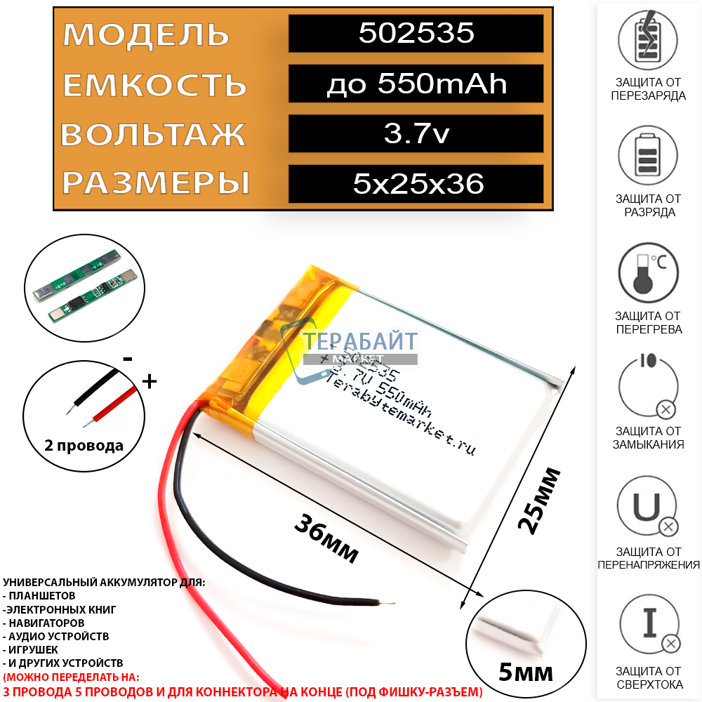 🔋 Емкость до 550mAh 3.7v
