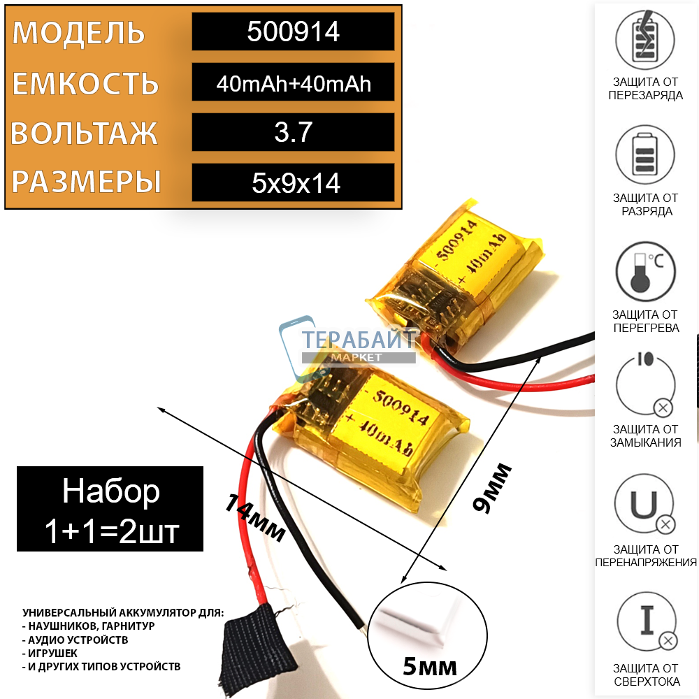 Ёмкость 2шт 40mAh+40mAh = 80mAh